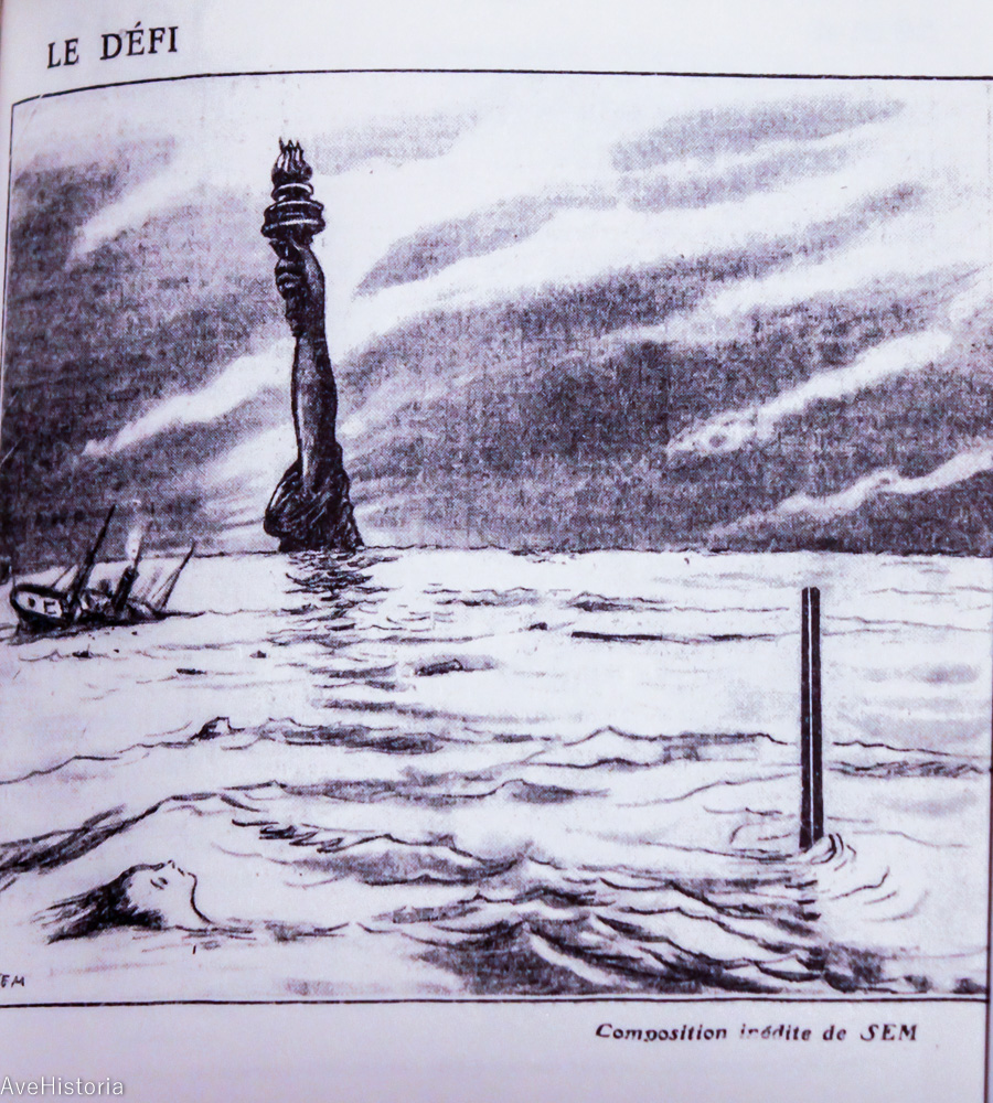 Statuia Libertății arată Aliaților făclia semn al speranței într-o victorie apropiată denunțând barbaria germană.